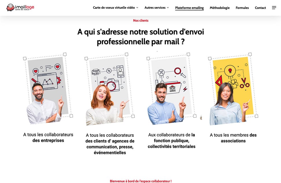 imaillage.com, solution de création de carte de voeux et plateforme d'envoi de mail personnalisé dédiée aux collaborateurs de votre entreprise